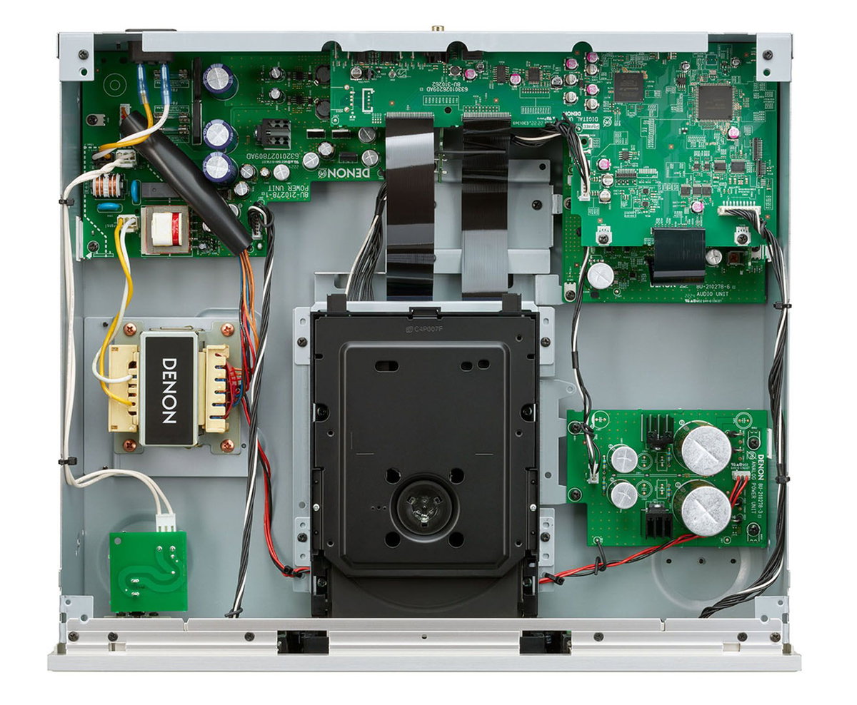 Diseñado para minimizar la vibración del chasis y reducir los efectos de audio adversos de los componentes pesados para que la calidad del sonido cumpla con los estándares de Denon.