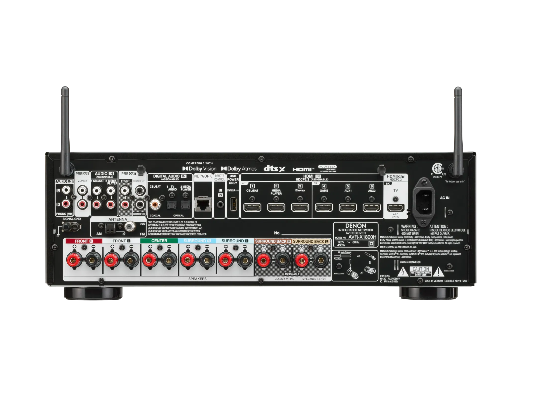 Disfruta de increíbles imágenes en 8K y de un sonido 3D con el AVR-X1800H. Llena fácilmente habitaciones pequeñas y medianas con un sonido excelente en una configuración 7.2 ó 5.2.2 con Dolby Atmos y DTS:X. Y, gracias a HEOS® Built-in, puedes reproducir música de forma inalámbrica y compartirla con altavoces compatibles con HEOS de toda la casa.